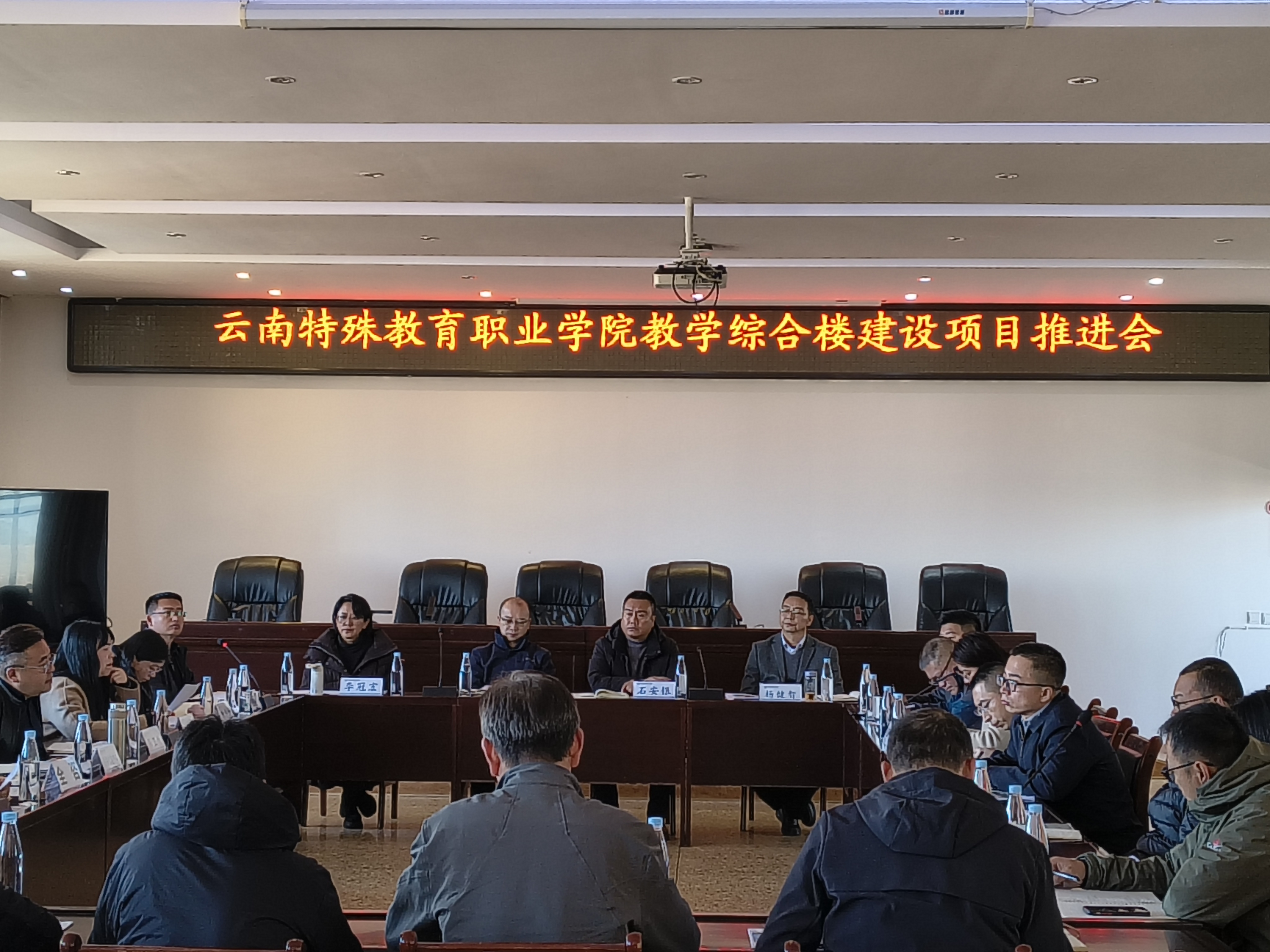 2026年1月14日,云南特殊教育职业学院召开教学综合楼建设项目推进会。校领导杨波、石安银、李冠宏、杨建智,以及校内相关职能部门负责人、各参建方代表参会。