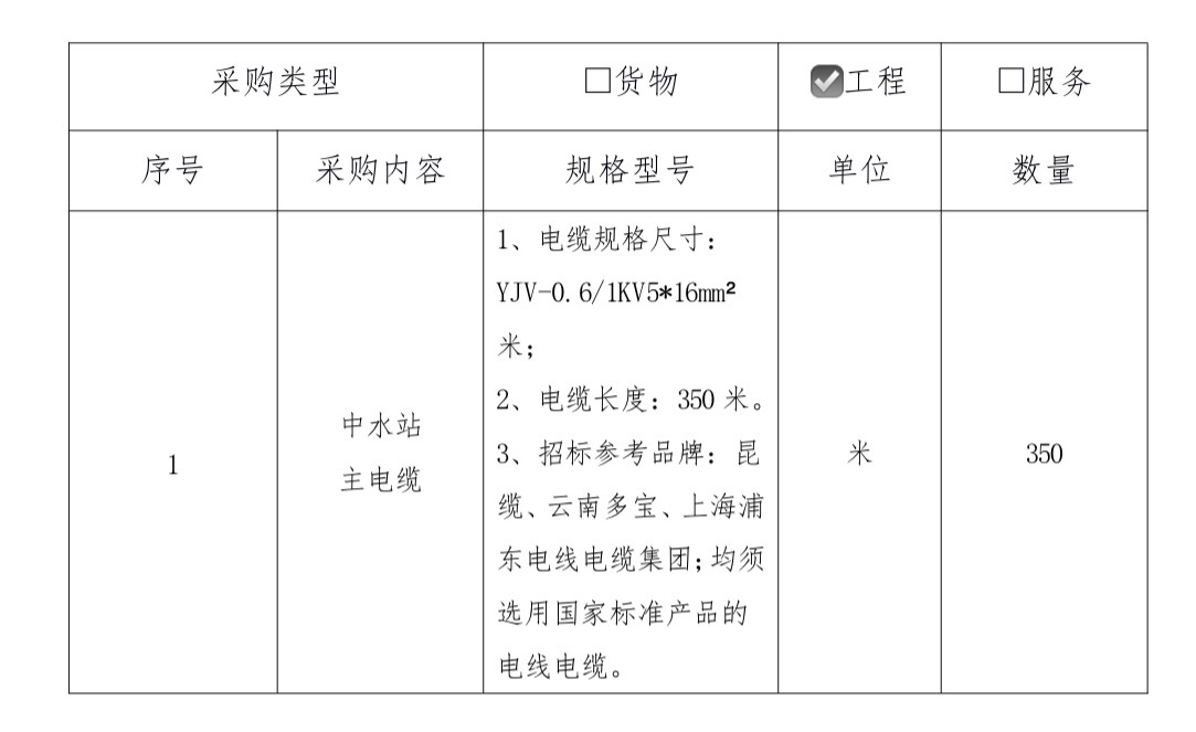 1、 项目名称:云南特殊教育职业学院中水站主电源电缆线建设