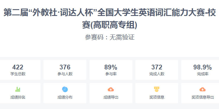 为推动大学生深入学习习近平新时代中国特色社会主义思想,弘扬中华优秀传统文化,激发英语学习兴趣,营造良好的英语学习氛围,公共基础部于2022年4月17日成功举办了首届“外教社·词达人杯”全国大学生英语词汇能力大赛。