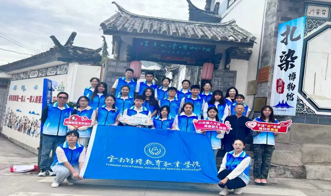志愿服务文化培育担当精神。作为特殊教育院校,学校将助残日活动打造成弘扬自强精神、传递社会温情的重要平台。在第三十五个全国助残日期间,围绕"弘扬自强与助残精神,凝聚团结奋进力量"的主题,策划了文艺展演、就业分享、艺术展、手语比赛等活动。学校还设置"助残之星""自强之星"表彰,表彰10家爱心单位和12位优秀个人。多年来,学校将助残日与志愿服务深度融合。“用我们的无声墙绘,让乡村更美丽!”艺术系无声墙绘志愿服务实践团的学生们,带着颜料与画笔走进石林彝族自治县五棵树村,将绿水青山、民族团结等主题绘满乡村墙面,该项目获评云南省“青春百团助百村”社会实践专项活动一等奖。学校构建“志愿服务+”育人模式,打造“星星的画展”“手语进社区”“助老扶残”等品牌项目,年均组织志愿服务活动50余场,参与学生超1200人次。2024年,学校志愿者团队为呈贡区万青社区残疾人送去冬衣物资,为昆明地铁工作人员开展手语培训,在奉献中培育学生的社会责任感,让“互助共进”的精神在实践中传承。