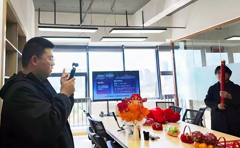 戚艾佳的团队为企业拍摄视频。受访者供图