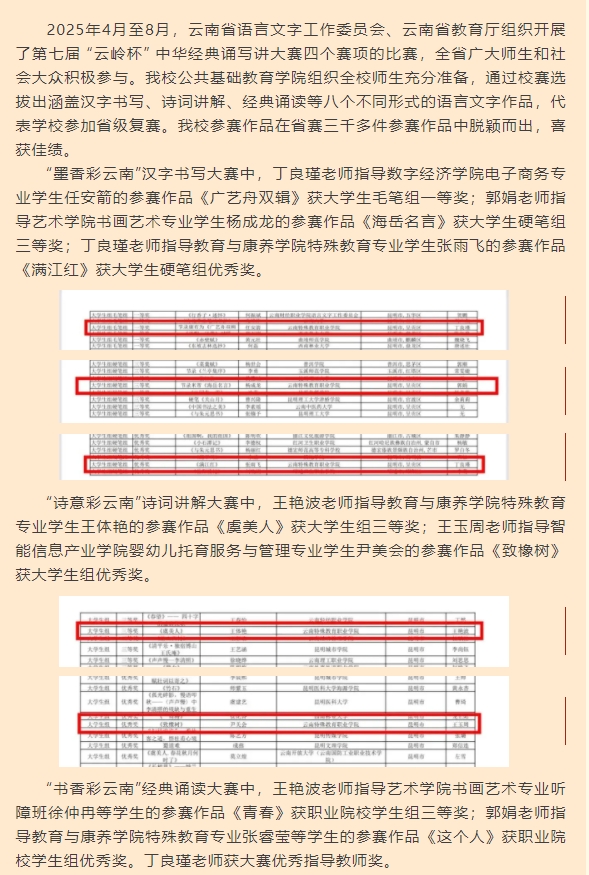 以赛促学传经典—我校在第七届“云岭杯”中华经典诵写讲大赛中喜获佳绩
