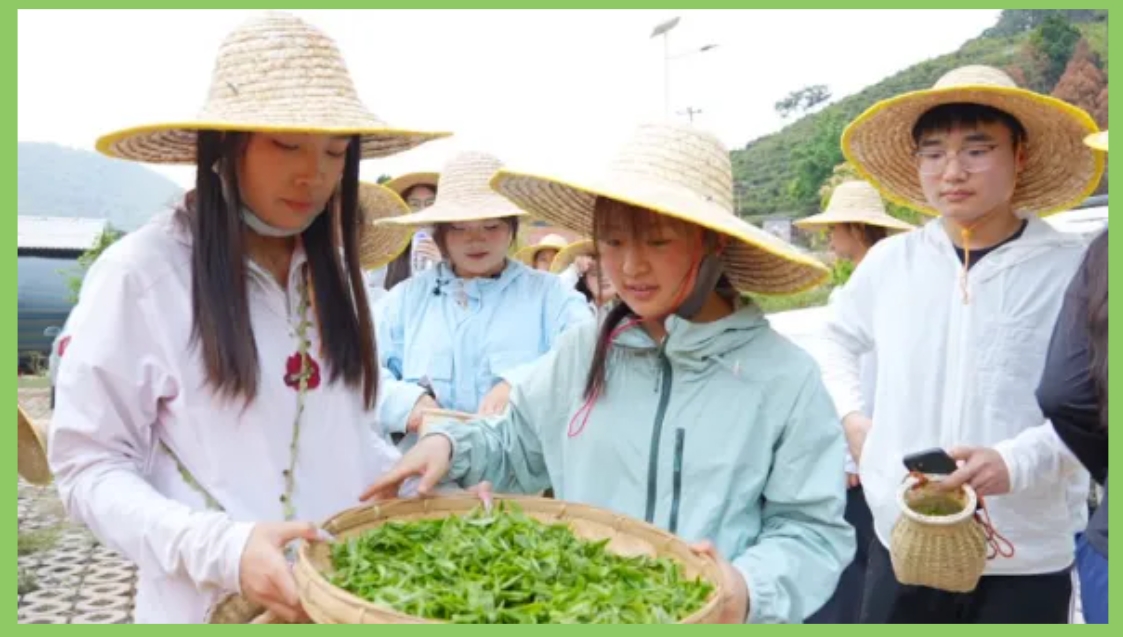 在同学们沉浸式体验春日茶事、亲手采摘鲜嫩茶芽之后,又投入到古法翻炒制茶、温润泡茶的工序中,静心学习茶桌礼仪与茶文化底蕴,在一采一制、一斟一酌间体悟茶道雅致,感受传统茶文化的独特韵味。