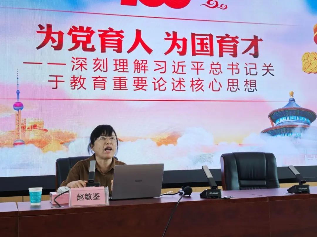 9月17日,教育与康养学院党支部特邀中共昆明市委党校赵敏鉴教授来校,作题为“为党育人 为国育才——深刻理解习近平总书记关于教育重要论述核心思想”的专题讲座,强化党员队伍育人使命担当。