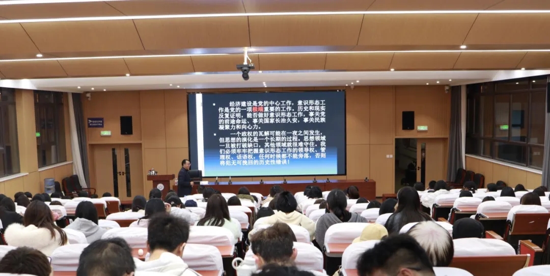 赵文宣分析了当前网上意识形态领域各种对立、交锋的表现形式,强调意识形态斗争看似无形,不见刀枪,但在一些重大突发事件、时间节点时不时冒出各种奇谈怪论,我们一定明辨是非。在意识形态领域,没有任何妥协、退让的余地,对那些歪曲事实、造谣生事、攻击抹黑言论,必须分门别类进行坚决回应、回击、斗争。批驳错误思潮,掌握话语权,不仅要敢于斗争,也要善于斗争,着眼于团结和争取大多数,讲清事实,有理有利有节开展舆论引导和斗争,帮助人们厘清是非界限、澄清模糊认识。网络并非法外之地,广大师生要做政治上的明白人,规范网络行为,加强思想政治建设,筑牢意识形态防线,树牢总体国家安全观。