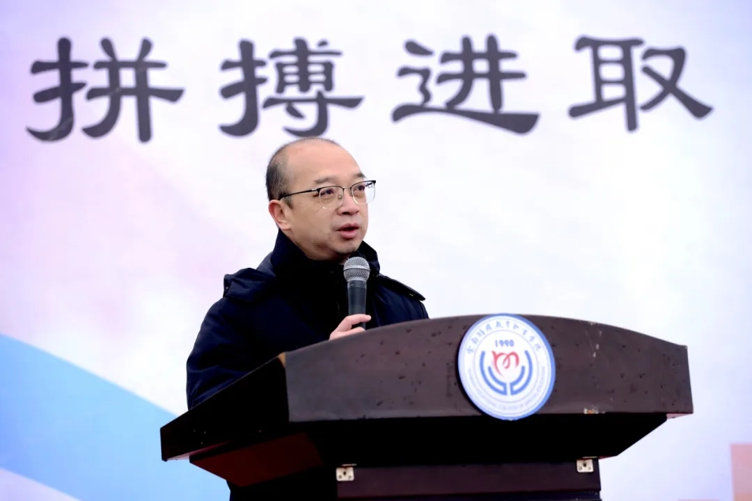 学校党委书记杨波致辞,寄语学子以运动逐梦,驰骋赛场与激情飞扬。