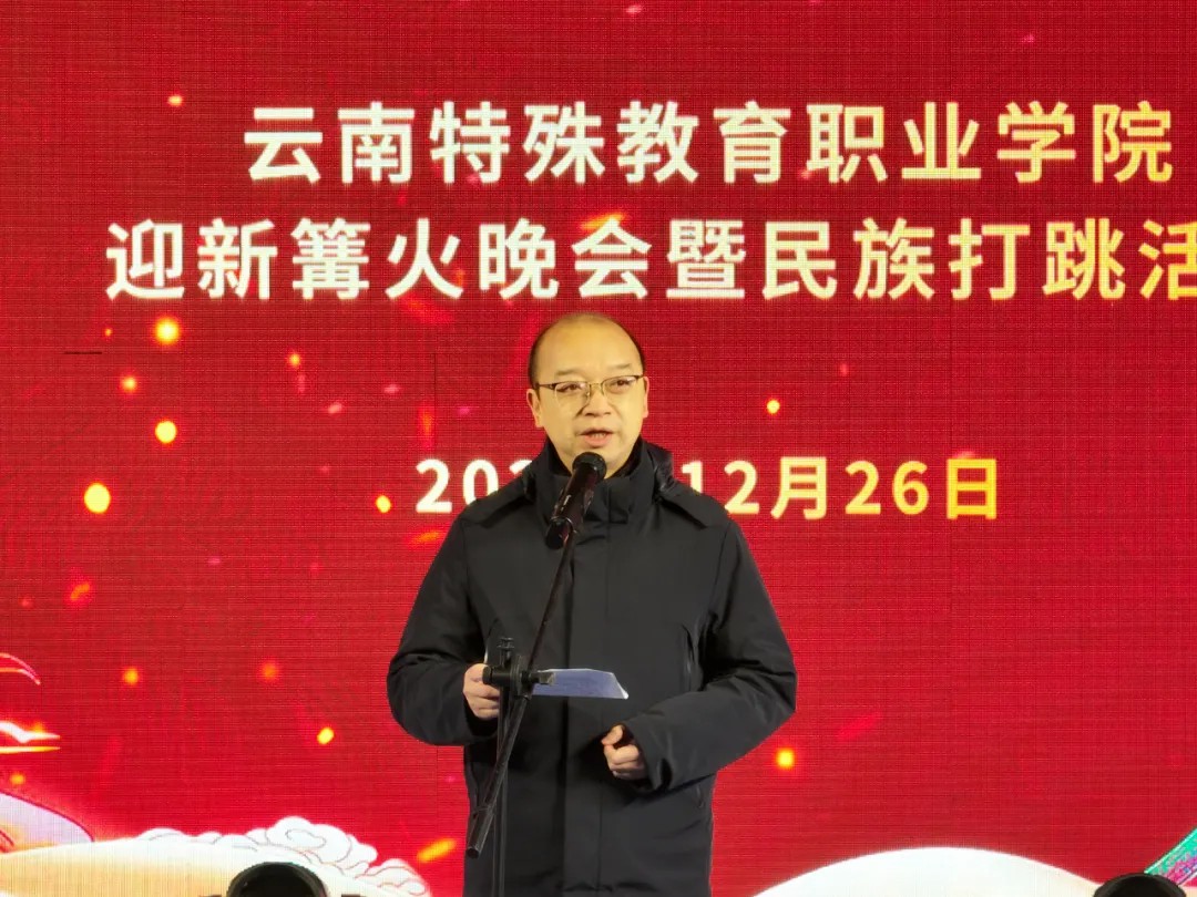 为丰富“一站式”学生社区文化生活,打造特色校园文化品牌,促进各民族师生交流与团结,12月26日晚,云南特殊教育职业学院在学校操场隆重举办2025年迎新篝火晚会暨民族打跳活动。学校党委书记杨波,党委副书记、校长石安银,以及师生代表欢聚一堂,在温馨欢乐的氛围中共启崭新篇章。