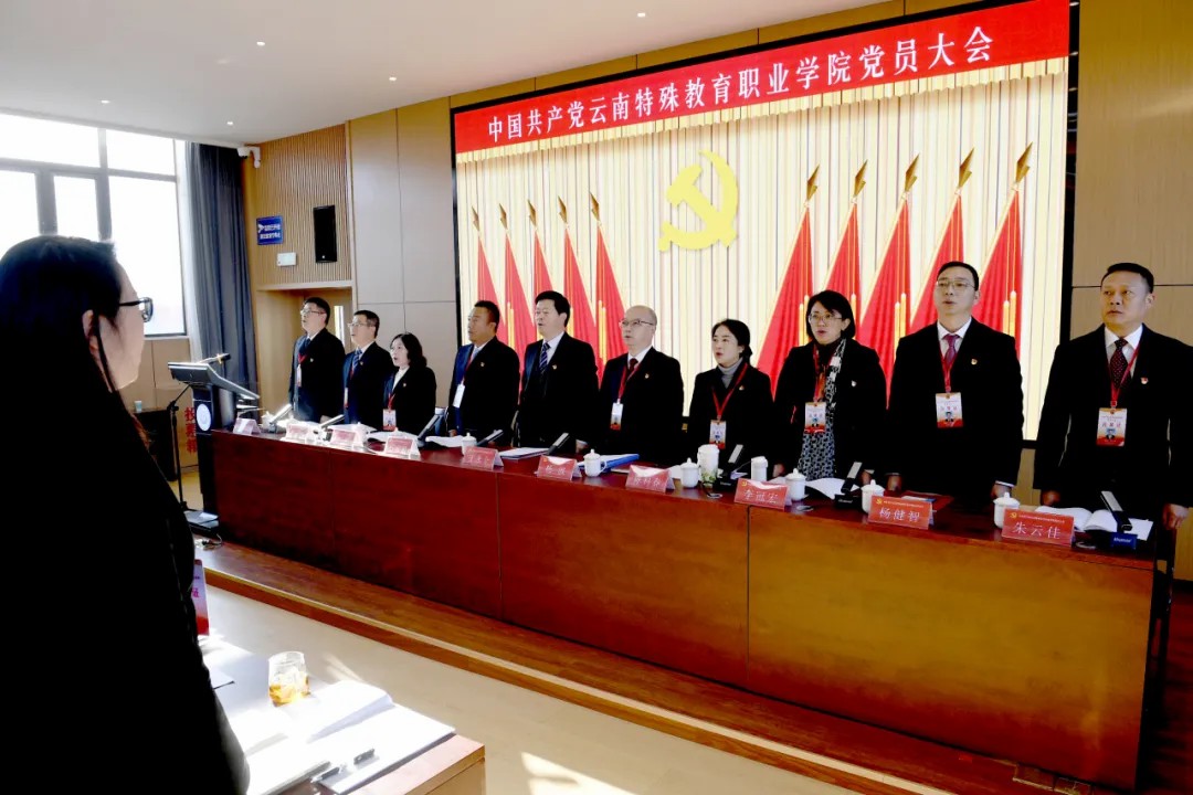 12月30日,中国共产党云南特殊教育职业学院党员大会在学校玉璋楼408会议室召开。全校党员同志齐聚一堂,共商学校发展大计,共谋特教事业新篇,为开启学校高质量发展新征程凝聚共识、汇聚力量。
