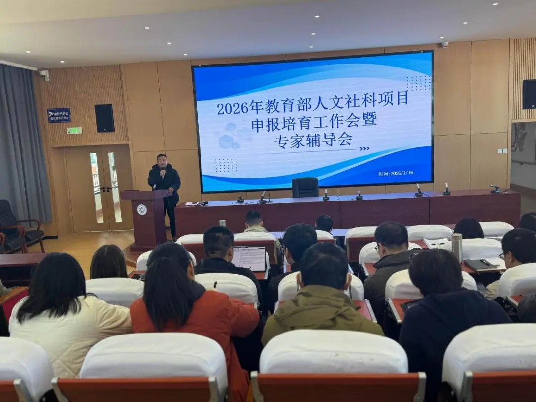 1月16日下午,我校召开2026年教育部人文社科项目申报培育工作暨专家专题辅导会,云南师范大学的庞申伟、王天玉、徐俊六、杨进勐四位教授受邀进行现场辅导,各学院的项目申报负责人及骨干教师代表参会。