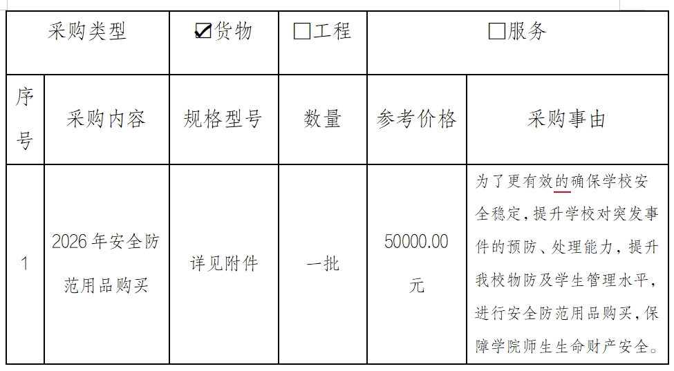 1.项目名称:云南特殊教育职业学院2026年安全防范用品购买项目
