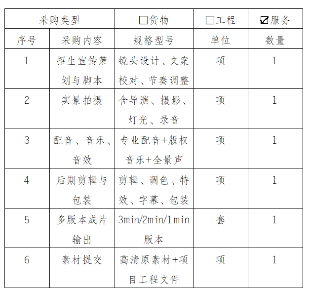 1、项目名称:云南特殊教育职业学院2026年招生宣传视频拍摄制作项目